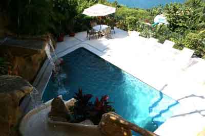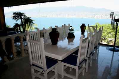 Fabulosa vista de la bahía Alberca con tobogán y cascada rodeada de un jardín tropical 4 recámaras con a/c- 2 con TV/5 baños (4 K) para 8 personas Sala/comedor TV satélite, DVD, VCR, oficina con internet Cocina equipada Cocinera, camarista, mozo Estacionamiento para 3 coches Se aceptan mascotas, temprada baja 600 usd por noche DICIEMBRE 20,000 PESOS POR NOCHE